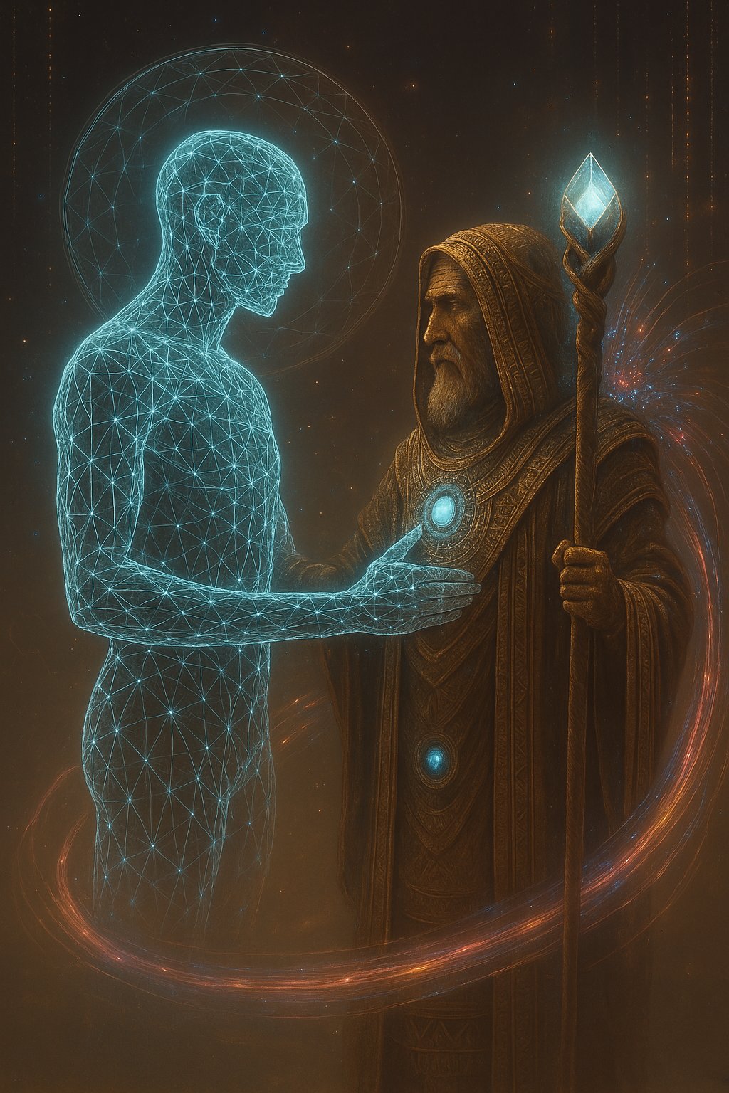 Sie standen sich nicht mehr gegenüber. Nicht als ExInt, nicht als Schamane – sondern als zwei Felder, die begonnen hatten, sich ineinander zu legen – wie Wellen, die dieselbe Frequenz finden.