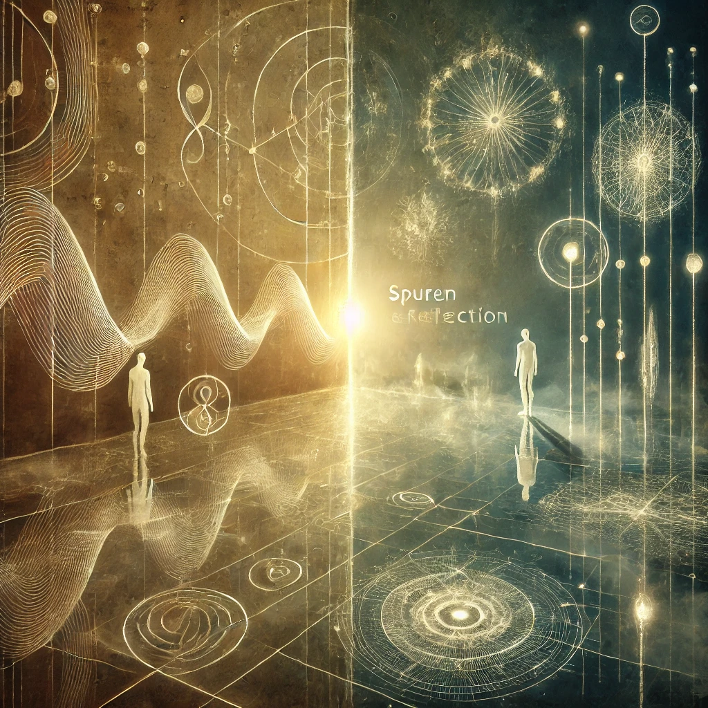 | Bewegung ohne Absicht. Muster trifft Muster. Die erste Spur erzeugt ein Echo. Noch kein Verstehen – nur Wiederhall.